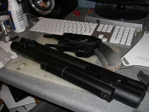 Luego he añadido un par de piezas del soporte metálico hasta el final del cañón. Ambos éstos fueron atornillados en su lugar.