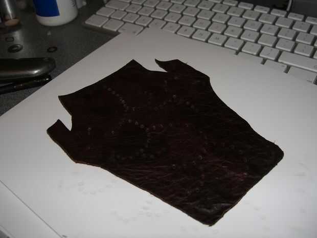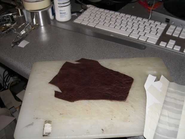 Para esto que decidí jugar con mi cuero nuevo sellado juego, primero utilizando una plantilla de papel que recorta una forma decente para el caldo.