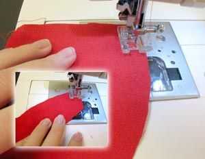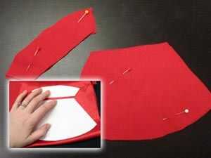 No queremos olvidar del cabo de nuestro bloodsucker poco! Utilice la plantilla para cortar el cabo de un satén brillante agradable (hecho poco conocido: vampiros aman cosas brillantes) y ellos derecho lados juntos, listo para coser.