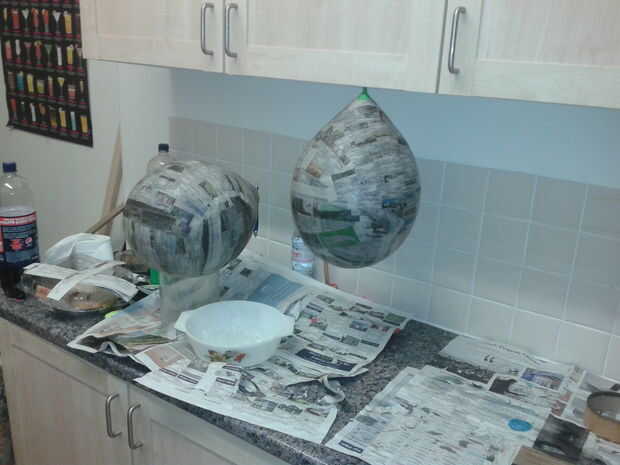 Ninguno de nosotros cualquier cosa han hecho de papel maché antes, para los dos primeros intentos fueron infructuoso. Hemos intentado usar gelatina, pero no fijó rápidamente y no era lo suficientemente fuerte (aunque parecía prometedor al principio). Segundo intento fue utilizando la técnica de mezcla de harina y agua, que encontramos en línea. Pero otra vez, no fue lo suficientemente fuerte. Para el tercero y por mucho la mejor técnica usaba harina de maíz (almidón de maíz también funciona). Los resultados fueron sorprendentes. Preparamos el pegamento usando esta guía en Squidoo.