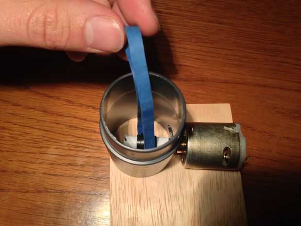 Alinee el tubo inferior, Motor eléctrico con eje y banda de goma en la base de madera. El motor eléctrico de 9v va en el agujero grande 16mm situado en la base del tubo inferior.