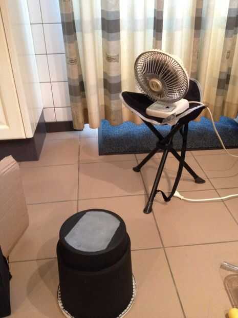 Sneller de OM de verf te laten drogen heb ik er een kleine ventilador bij gezet.