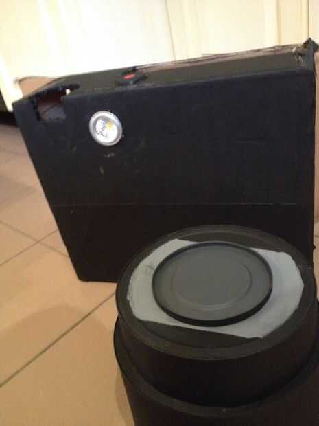 OP de lente heb ik nog een groot deksel gelijmd en met geverfd de grijs donker.