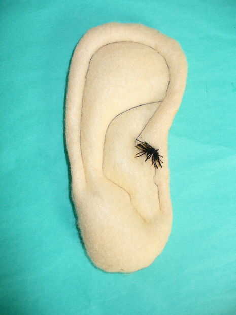 Aquí decidí dar algún pelo de oreja a oreja peluche - acababa de usar un hilo grueso negro e izquierda sobre 5 bucles que rematan en la parte posterior de la oreja corta los lazos para que se vean como el pelo de oreja de miedo. Diviértete con los detalles - agregar verrugas, venas o apenas sobre y lo que podría ser en una oreja!