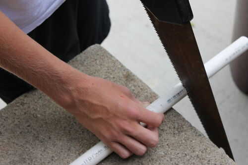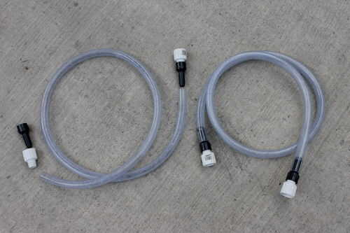 Corte el tubo de vinilo de 10 pies a la longitud deseada. Cortamos nuestros en pie 2-5 piezas. Inserte los adaptadores.