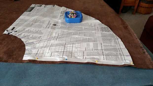 Después de las cuatro piezas ha cortado, la clavija ellos junto encarando los derechos y dejar la falda abierta (en otras palabras, no coser todo el camino alrededor de lo contrario no podrás hacer tus pliegues! Coser las piezas juntos para tener un pedazo largo de material
