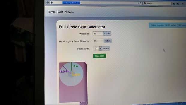 Primer paso será ir a circleskirtpattern.com y sus medidas de entrada. Hice mi capa inferior de trece pulgadas de largo (medida de mi cintura a mitad del muslo) y para la capa superior, sólo restan cuatro pulgadas (nueve pulgadas). Usted puede hacer esta falda como corto o tan largo como desee dependiendo de su cantidad de tela o nivel de comodidad.