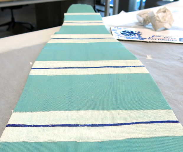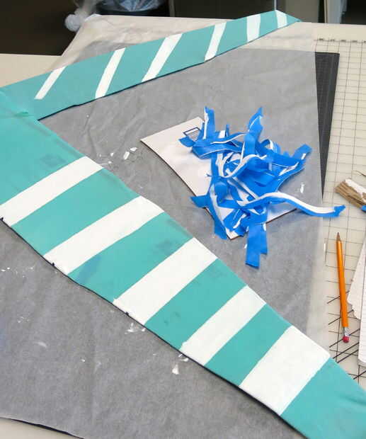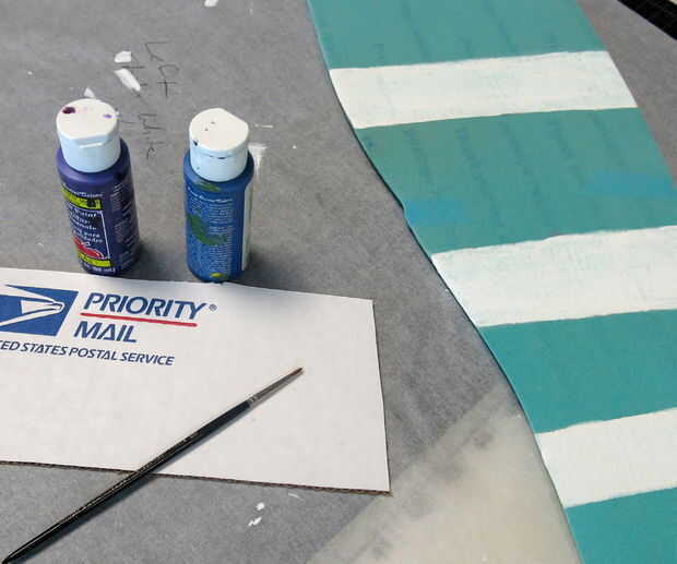 - Pintar las rayas púrpuras en las rayas blancas horizontales.