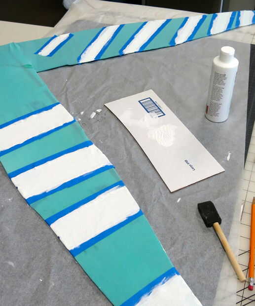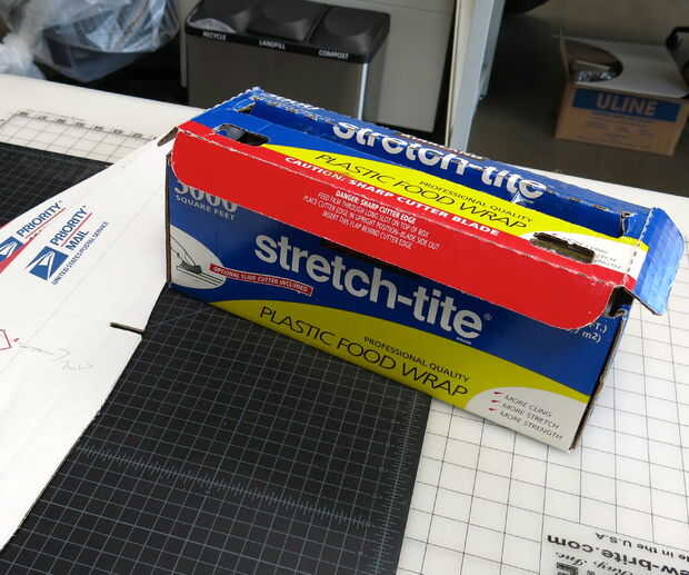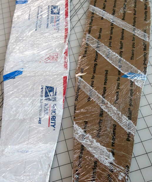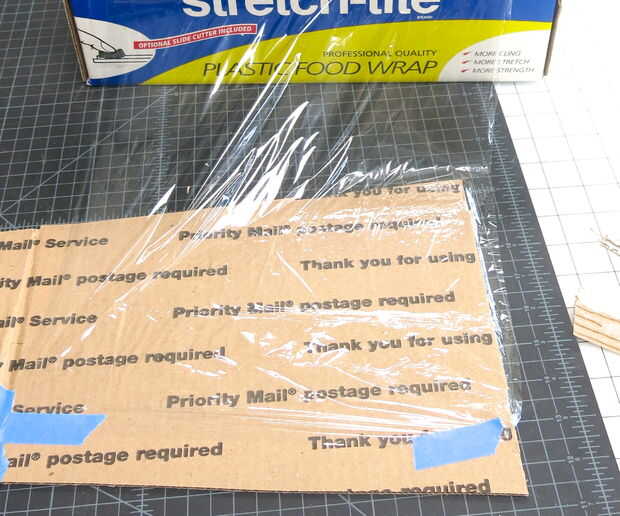 - Envuelva las piezas en plástico transparente. No hacer esto al principio y la cartulina pegado terriblemente a las medias.