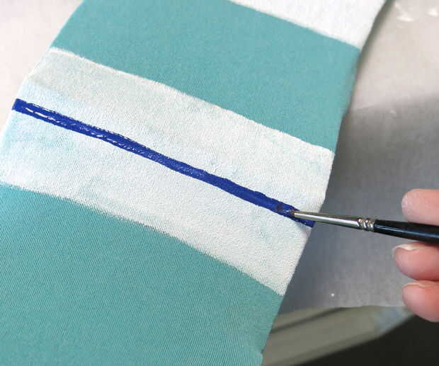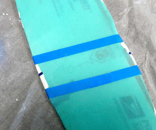 - Dibujar lo que se va pintando. Utilice cinta de pintor para obtener líneas más limpia, otra vez, olvidé hacerlo inmediatamente pero lo hizo cuando lo hice al otro lado de la pierna. Una pierna que quieres remolinos más delgadas líneas blancas. Hice ésos pelea de 1 pulgada de ancho. La otra pierna tendrá líneas blancas gruesas va horizontal encima de la pierna. Hice las 2 pulgadas.