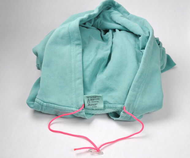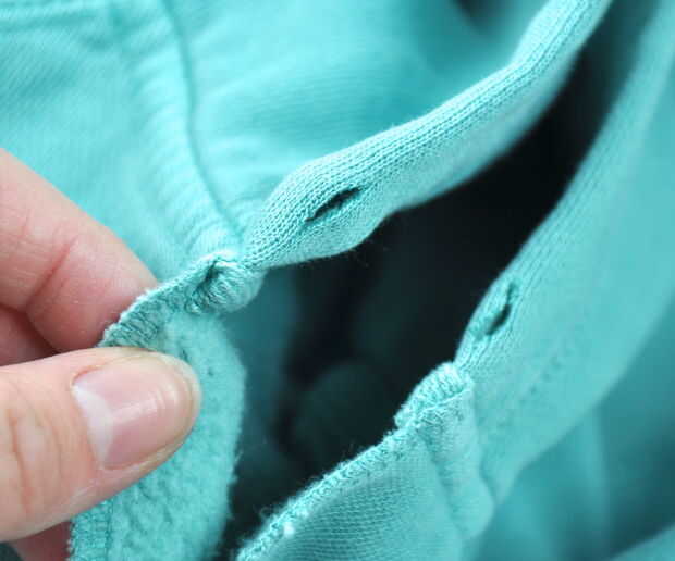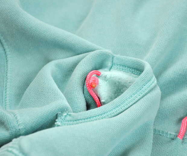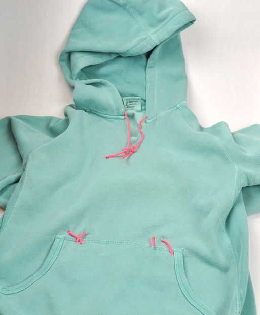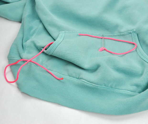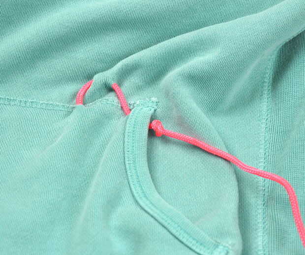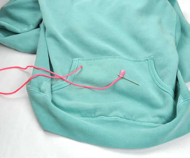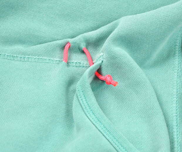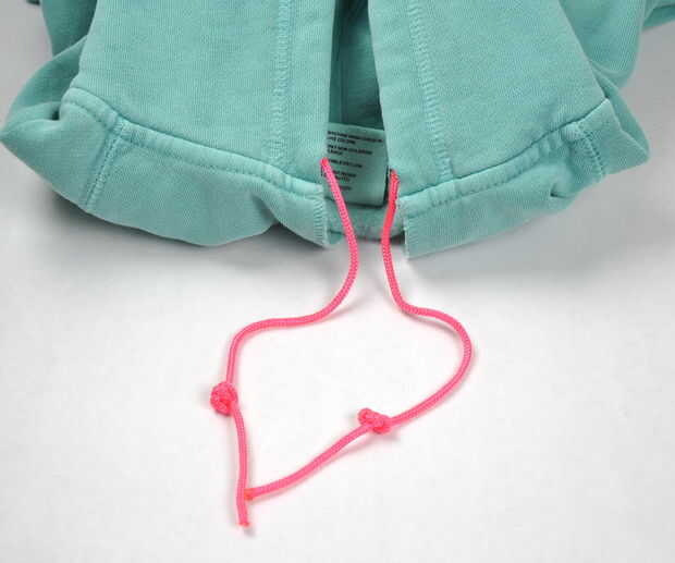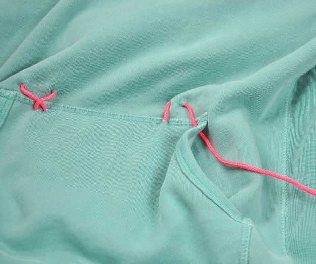 También, reemplazar el lazo de la sudadera con el paracord.  Mina ni siquiera tenía uno, así que corte los orificios y rosca en el paracord.