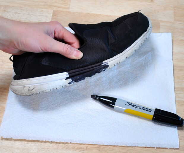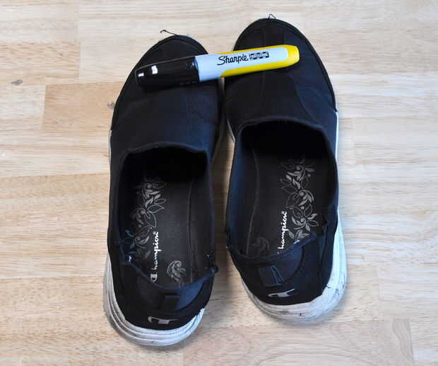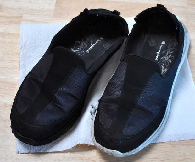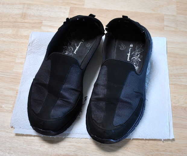 Necesita todos los zapatos negros o botas cortos para completar el traje. No pude encontrar un par que quería así que tomé mi viejo par de zapatos y color en fondo blanco.