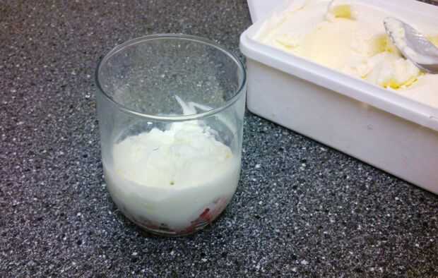 Añadir una cucharada de helado de vainilla encima las frutas