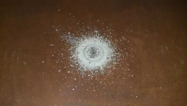 Primero - marque el centro exacto de la pieza. Siempre mida dos veces, corte una vez! Ahora toma un poco de la Sierra de hoyo y taladro en el agujero del tamaño correcto para el desagüe. Mina tuvo que ser al menos 1-1/4", así que fui a 1-1/2". Esta parte tendrá algunos problemas si tienes un cajón aquí. Sacó al principio.