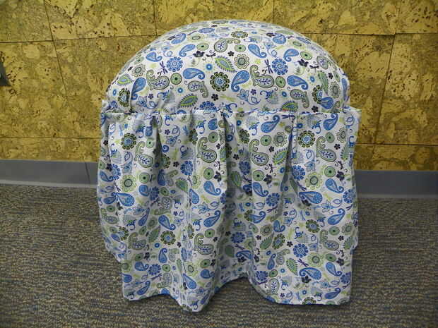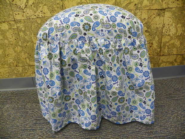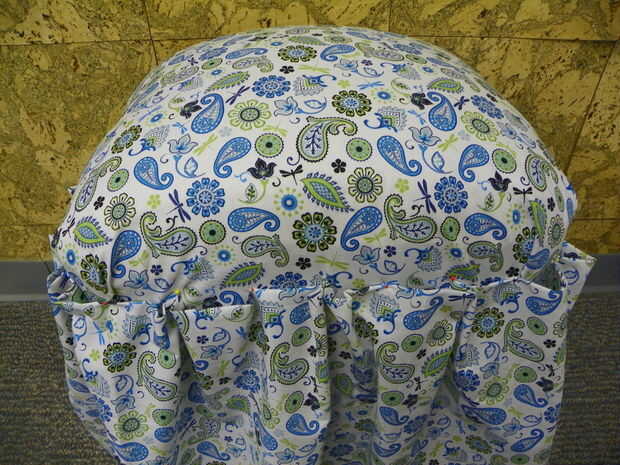 Cortar un trozo de tela 25 "x 27". Coloque el cojín sobre el taburete y poner a la tela sobre el cojín. Perno de la tela para la funda original. Tire suavemente, haciéndola agradable y cómodo. Puntada de la mano a la cubierta original. Para la sección de falda, mida desde la parte superior de las heces (no cuenta el amortiguador) a la parte inferior donde está la madera contrachapada. Añadir 1" en la parte superior y 2" en la parte inferior. Esto es el colmo. Ahora mide alrededor de todo el asunto y se multiplican x 2-1/2 o 3. (dependiendo de cómo completo quieres la falda para ser). Esto es el ancho. cortar un trozo de tela de este tamaño. Será aproximadamente de 20" de alto por 120" de ancho. Utilizando la máquina de coser, coser los 2 extremos cortos juntos. (lados del derecho juntos) Girar bajo el borde inferior 1" y girar bajo otra vez. PIN. Dobladillo con la máquina de coser. Dóblalo por la mitad y mitad otra vez y utilizando pernos de seguridad, marque en la parte superior en 4 lugares. Este paso lo ayudará a ser distribuidos uniformemente cuando se reúnen. Coloque la falda alrededor de las heces y doblar sobre el borde superior 1". Perno de la falda a las heces que son los pasadores de seguridad en las 4 esquinas. Seguir fijando todo el camino alrededor. Falda de punto mano a las heces.