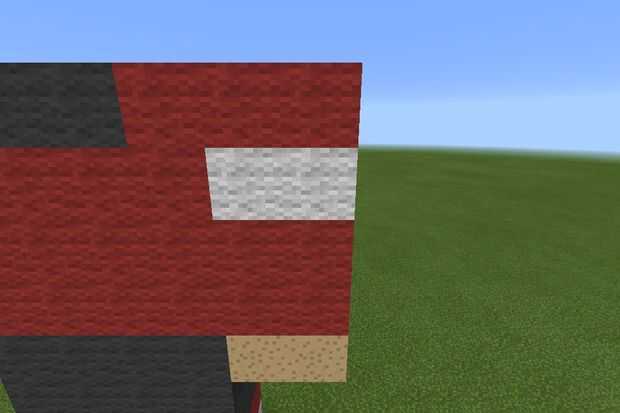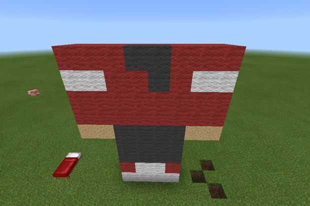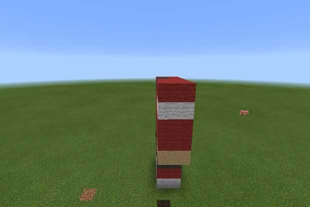 De arriba a abajo en un 2 x 2 x 4 bloque se va, rojo, blanco, rojo, rojo, seta. Hacerlo por ambos lados