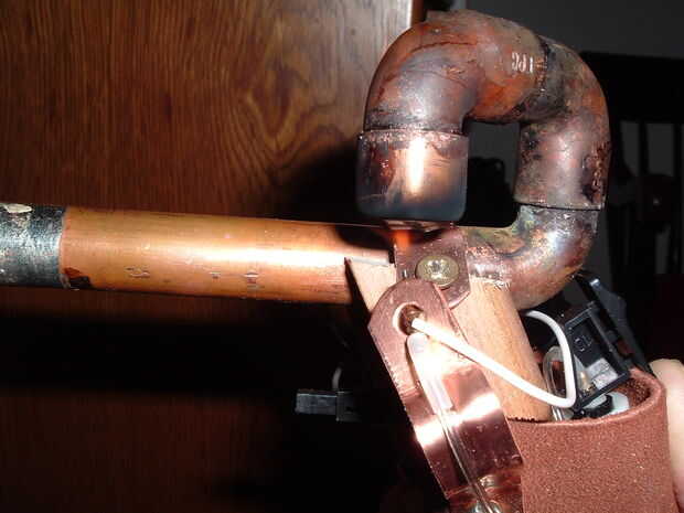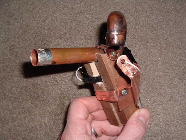 Una parrilla más ligera es desensamblada y utilizada como la fuente de calor para la producción de vapor junto con algunas piezas de cobre y tubería de cobre de 1/2". Se coloca algo de agua dentro del barril, se inserta un enchufe de patata como un sello de aire y el proyectil, y un corcho se utiliza como una liberación repentina de la presión. La llama del encendedor agua calienta a vapor y la presión aumenta en el cañón hasta que el corcho y el Papa no pueden hacer, entonces Salta y lanza la papa a donde se apunta.