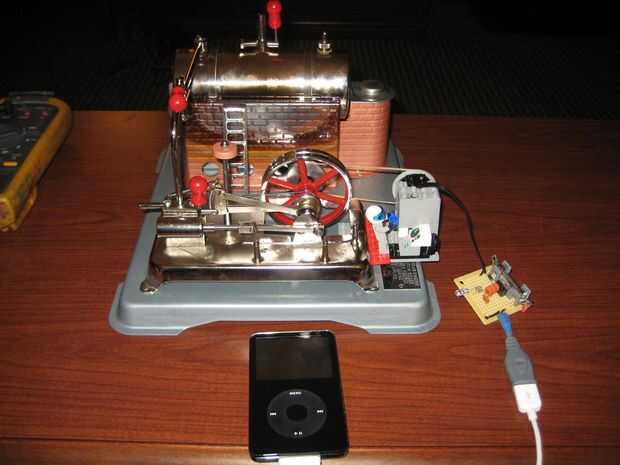 Yo acoplado un Motor Technic Lego a un motor de vapor Jensen #75 para hacer un generador de crudo. A partir de ahí construí un circuito regulador de 5V y soldadas en una conexión de USB hembra para alimentar cualquier dispositivo USB. Ya que quise usar para cargar mi iPod, pongo en un diodo y un fusible.5 para proporcionar cierta protección de circuito.