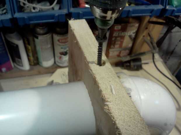 Segundo: Ponga el el tubo de PVC a través de los agujeros, luego avellanado, taladro y tornillo justo por encima de cada una de las patas en PVC tubos del cuerpo para mantener el cuerpo del PVC de la mudanza.