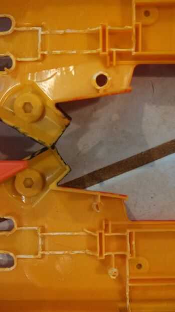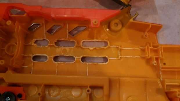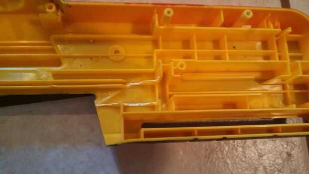 Después de que han arrancado todas las tripas fuera, el siguiente paso es quitar también ciertas áreas de plástico para la pistola demasiado ajuste... Yo he marcado a todos