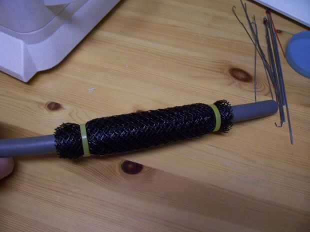 Próximo trabajo es proteger las manos de la manguera caliente envuelto un par de pies de canal malla alrededor mío y sostenido en lugar con dos lazos de cable y una cinta de ducto cinta, muy simples y funciona admirablemente.