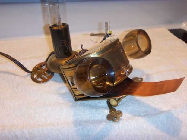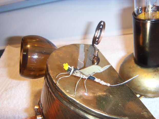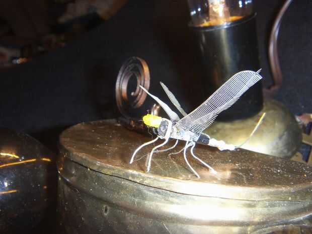 10: DRAGON FLY--CUERPO ES VIEJA PARTE DE VÍNCULO DE R/C CON RESISTENCIAS PARA LA COLA Y LAS PATAS, LAS ALAS ESTÁN HECHAS DE VIEJO MODELO PARTE PANTALLA O PODRÍA UTILIZAR VIEJA PANTALLA DE LA MÁQUINA DE AFEITAR SI TIENES UNA, OJOS SON DOS MINI LED LUCES AMARILLAS