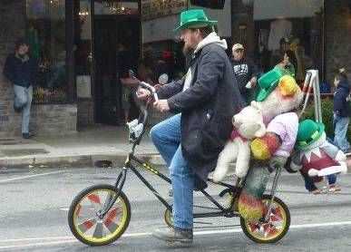 Nuestro soldador equipo elegido para pilotar esta creación en desfile del día de San Patricio (3ª foto). Los dos osos en el asiento de banana y dos sobre el columpio mecedora también eran muy contentos de participar en las festividades en sus trajes de 'dancing bear'. Fue todo para la gloria!