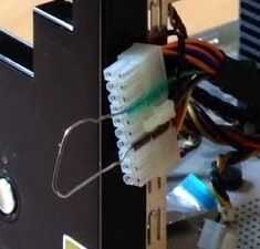 6-Para acabar, ¡el truco mágico! Utilizaremos un clip para realizar un puente en la fuente de alimentación. Uno de los extremos del clip lo tendremos poner en uno de los cables negros de la fuente de alimentación y el otro extremo en el cable verde. De esta manera, conseguiremos las resistencias se empiecen a calentar y cuando estén calientes evaporaran la relacionados liquida tenemos en el bote.