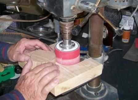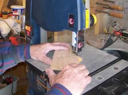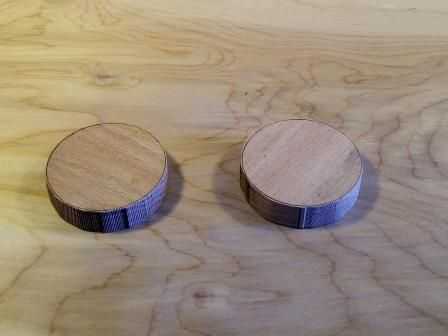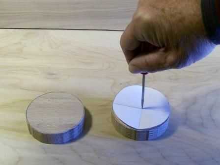 Con lo que vi tiene, cortar los discos. Entonces usando la plantilla de papel y una herramienta con punta afilada Marque el centro de cada disco.