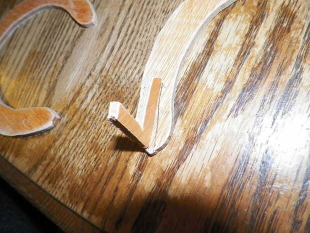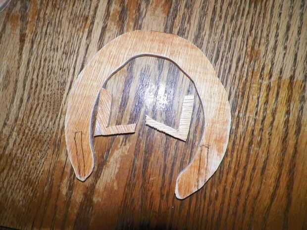 Utilizando la plantilla, cortar cuatro formas de herradura de la pieza de madera.  A continuación, corte dos llaves (como se muestra en la imagen) con un ángulo ligeramente inferior a 90 grados. Fondo de arena con el grano.