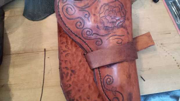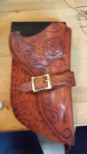 Probablemente lo adornarán con un concho de chapas o dos, pero no hay Ible para chapas conchos por lo que tengo resolver primero. En aquel momento lo haré probablemente también añadir un par de tiras de cuero en la punta de la parte inferior, para atar a la pierna como una adecuada pistolero.
