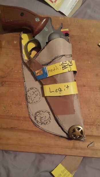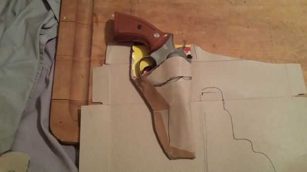 Ahora es tiempo para algunas decisiones de diseño. Las primeras fundas donde de un diseño "Slim Jim". Usa la menor cantidad de piel y tiempo, que históricamente es una buena cosa. Permite el avance rápido de unos años, cuando fundas funcionales y decorativos. Hay un poco de una evolución para fundas que tienen un lazo grande, extendida que ofrece no que sólo más espacio a la herramienta, pero más consistente dibuja así. Este es el diseño que vemos en westerns más y es utilizado por una gran cantidad de recreadores y entusiasta de los grupos. Simplemente dobla la cartulina encima y trazado cuánto cinturón panel quería. También he añadido dos correas, para sostener la pistola agarre porciones para el panel trasero de la correa de la correa. Terminé de dumping la correa dos, "Estilo mexicano" de una sola correa cuando decidí que quería espacio máximo útiles en las áreas de retención de la pistola. La cinta pasa a través de una ranura en el panel posterior, vamos a añadir una hebilla más adelante para la correa hacia abajo. Un diseño más complicado es cuando es ranurado del panel posterior y la funda/pistola simplemente alforzas en la parte trasera. Me gusta la rusticness de este diseño, que puedo hacerlo la próxima vez.