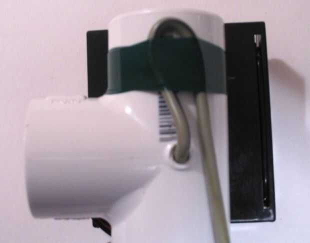 El motor de Radio Shack se pretende ejecutar en 1.5-3V, pero si utilizas pilas recargables puede funcionar el motor en 3.6V sin demasiados problemas. Una tensión superior a motor hace que el motor para girar en una RPM más alta que resulta en más alto voltaje en el colector. Yo no tenía un soporte de la batería 3xAA así que hizo una batería de maniquí de un trozo de espiga de madera cortado a la misma longitud que un AA, envuelto en papel de aluminio y aislamiento de los lados con cinta aislante. Caliente pegar el portapilas al lado de la t.
