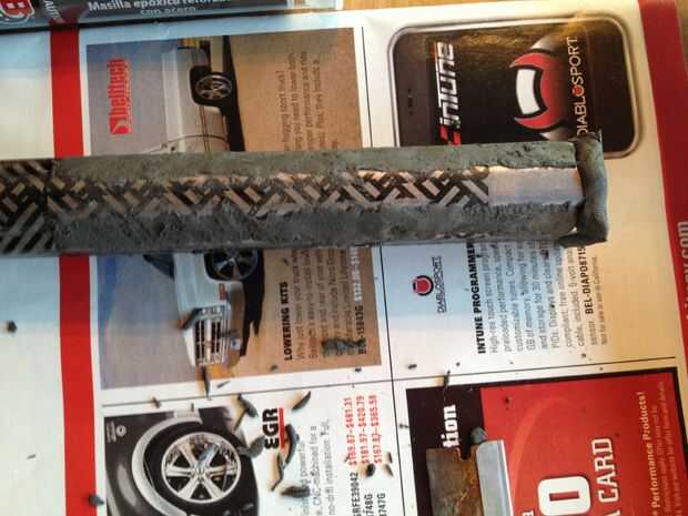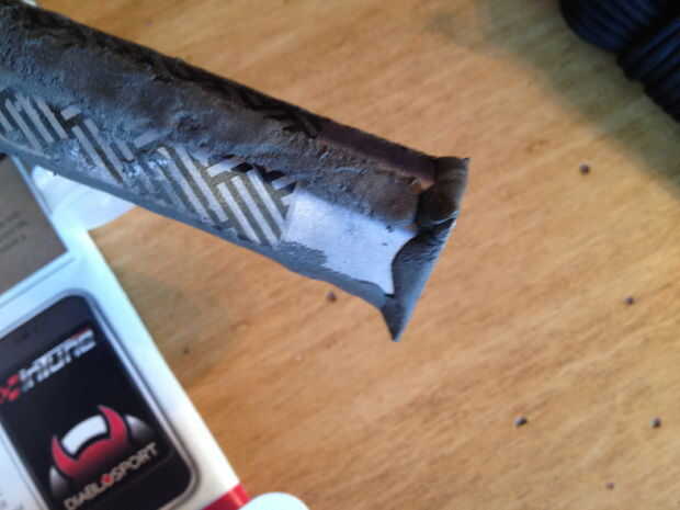 -Mide un qué altura alcanza la agarradera en el palo. Aplica un poco de masilla en el extremo del palo para darle un borde suavizado. (este paso no es 100% necesario pero lo la empuñadura se ajustara bien al palo, y esto paso lo asegura.
