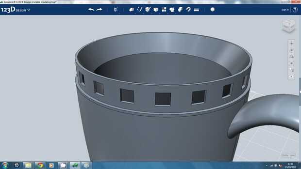 El siguiente es añadir las rejillas de ventilación en la parte inferior de la Copa permitiendo una convección actual que se producirá cuando sea necesario para aumentar la pérdida de calor de la taza...