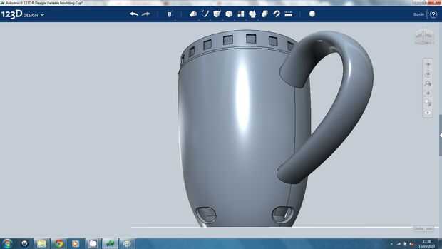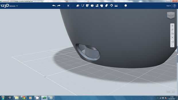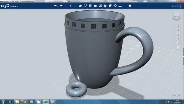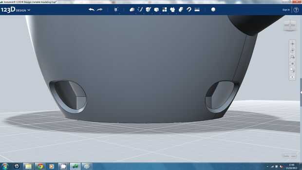 Para hacer la forma de los orificios de ventilación inferiores más interesante que las rejillas de ventilación superiores, empezó creando un toro haciendo clic en la herramienta de 'Toro' en la categoría 'Primitivas' en la parte superior y cambiar las dimensiones del toro por lo que es 'Importante radio' era 'Radio menor' 10mm y de 5mm. Coloqué este toro en la red (pulsando) justo en frente de la parte delantera de la taza.