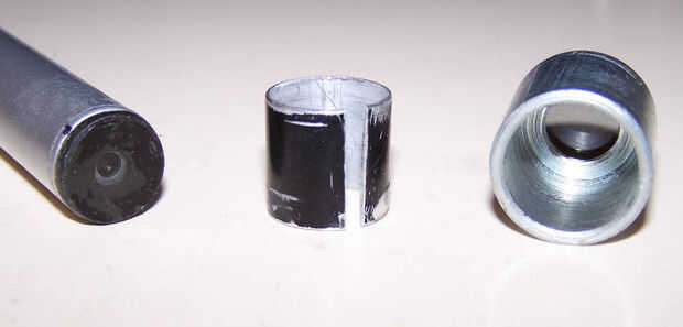 Total me costo: $0. Partes: pegamento, plástico polarizado lentes de gafas de cine 3D desechables, tira de aluminio, casquillo del metal que se coloca sobre el final del puntero láser con un agujero como se muestra en la imagen. OK, este último elemento fue un hallazgo afortunado en un cajón de basura, pero no es una forma muy inusual encontrar o hacer. La tapa se podía hacer de cualquier material. Una alternativa a la tira de aluminio es llana vieja cinta scotch. Esa parte es coincida con el diámetro del láser en la tapa y ofrecer un rozamiento de encaje de manera que pueda girar la tapa pero no caen.