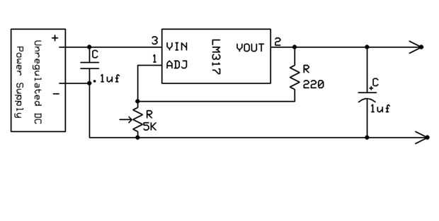 este Instructable le mostrará cómo hacer un 1.6v-6v filtrado lineal la fuente de alimentación con un LM317 para el regulador de voltaje variable y un potenciómetro 1kohm (trimmer). Puede fuente de energía desde cualquier lugar entre 7v a 14v para est