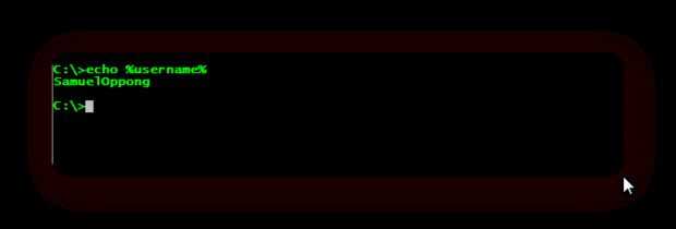 Has alguna vez escribió "echo % username %" y conseguido algo parecido a tu nombre de usuario. Por ejemplo desde el símbolo del sistema.