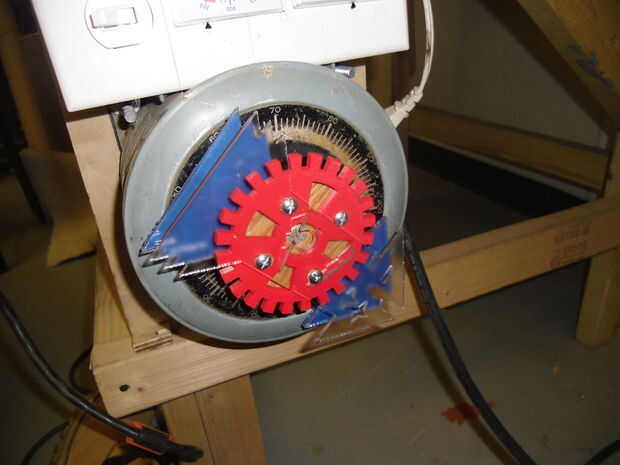 Usando una sierra o un cortador de perno, saque la longitud de los tornillos, después aprieta la tuerca ha sido firmemente con la mano. Coloque la perilla en el vástago de la Variac empujándolos el agujero en el vástago. Usted puede ser capaz de hacer este más fácil, si se gira la perilla y facilitando en su lugar. Ahora el Variac tiene un 3D impreso y Lasercut perilla!