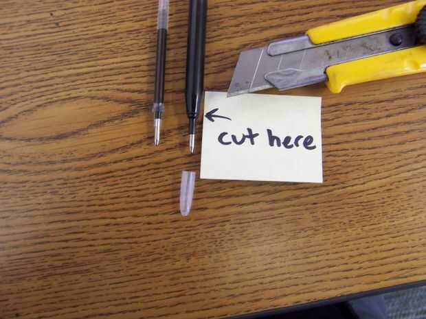 2. corte alrededor de la cresta donde enangosta abajo, cortando así la punta del bolígrafo de plástico bien.