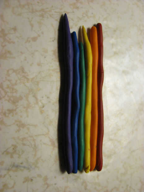Un collar de arcilla de polímero fácil para mostrar su apoyo a la igualdad del matrimonio.Paso 1: fuentes deTodo lo que necesitas es arcilla, un cuchillo u otro filo y una máquina de pasta o rodillo.Paso 2: Rodillo y cortar Rollo de cada color en un