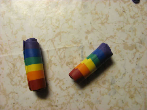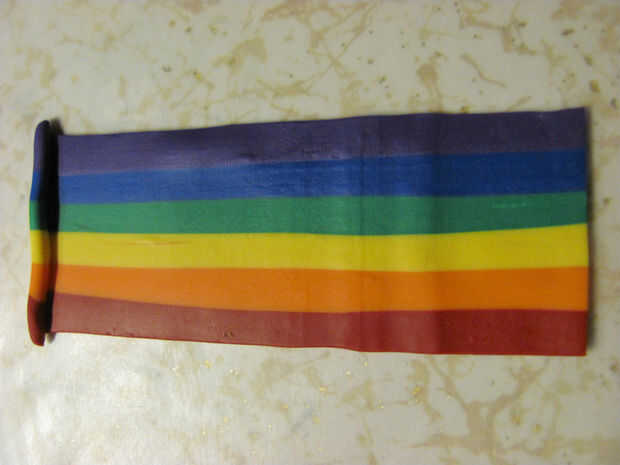 Un collar de arcilla de polímero fácil para mostrar su apoyo a la igualdad del matrimonio.Paso 1: fuentes deTodo lo que necesitas es arcilla, un cuchillo u otro filo y una máquina de pasta o rodillo.Paso 2: Rodillo y cortar Rollo de cada color en un