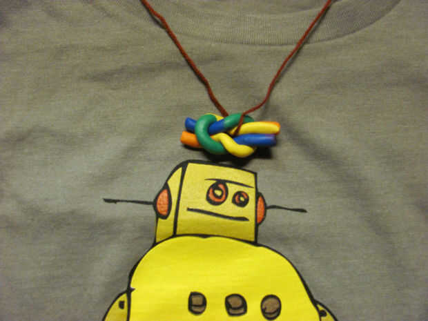 Un collar de arcilla de polímero fácil para mostrar su apoyo a la igualdad del matrimonio.Paso 1: fuentes deTodo lo que necesitas es arcilla, un cuchillo u otro filo y una máquina de pasta o rodillo.Paso 2: Rodillo y cortar Rollo de cada color en un