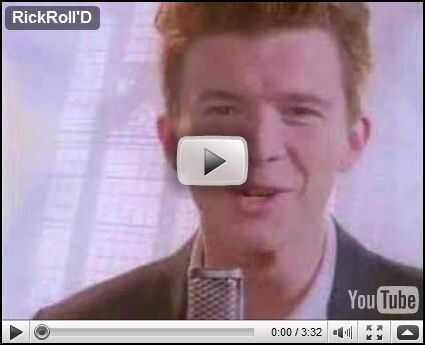 "Rickrolling es una broma que el video musical de la canción de Rick Astley 1987"Nunca va a darle para arriba". En un RickRoll, una persona proporciona un enlace que dicen es relevante a un tema determinado, sino que luego lleva al usuario a la Astley video. También puede significar tocando la canción fuerte en público con el fin de ser perturbadoras. Una persona que se enamora de la broma se dice que es "RickRolled".