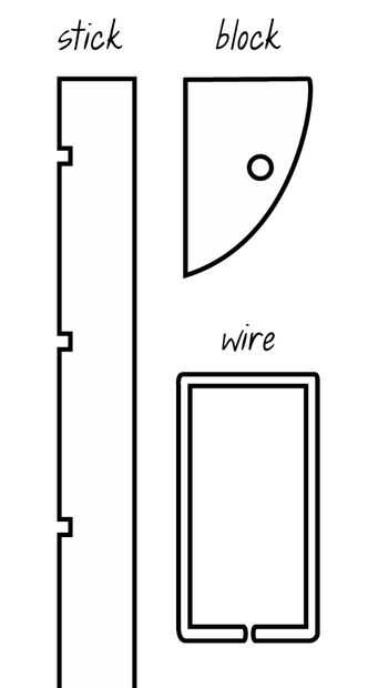 - Madera plana, sobre el mismo grosor que el palo, para el bloque cuarto redondo. Utilicé algunos roble de chatarra, pero podría cortar esta parte de la madera de paleta, también.