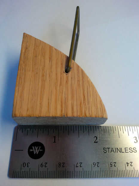 Corte el bloque en forma de cuña con su juego. Los lados rectos de mina son 2" y 2-1/4", sin ninguna razón particular.