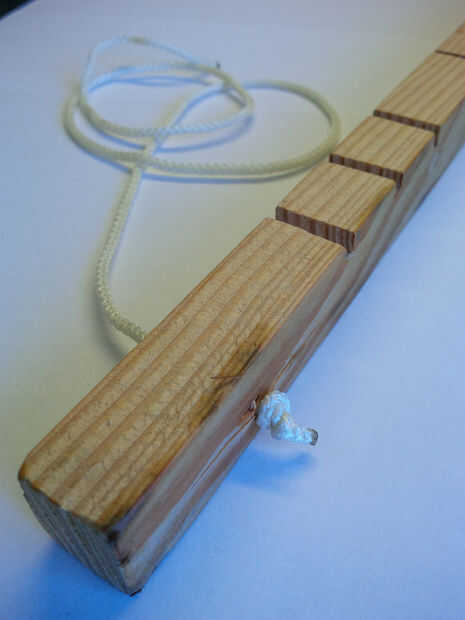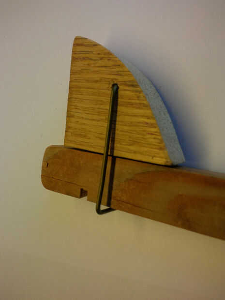 Deslice el bloque en el palo, con un lado plano hacia arriba y el lado curvo hacia el palo.