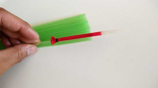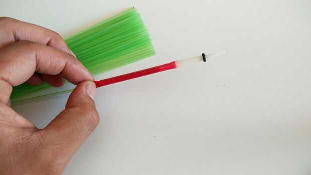 - Coloque algunos de los O-rings en la paja. Espacio les aparte para que no toquen - de lo contrario, será difícil rodar hacia abajo.