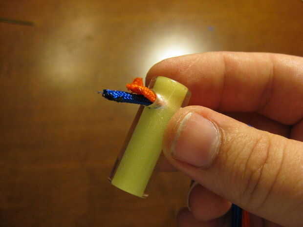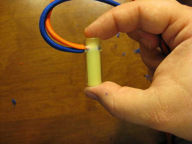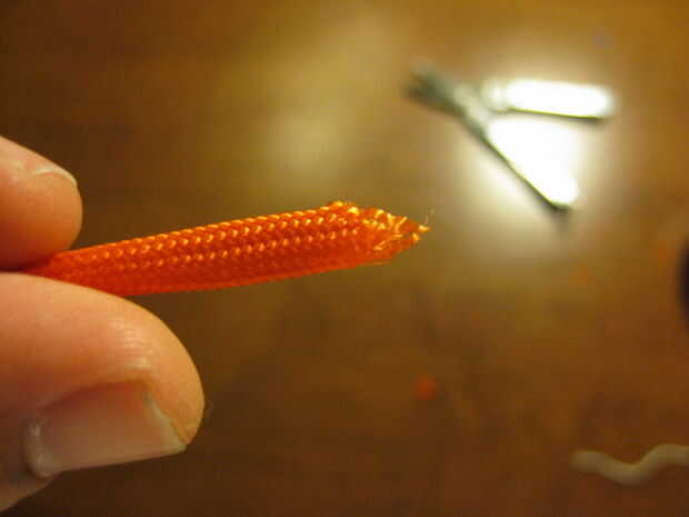 Simplemente tire hacia fuera 2-3" de la cuerda base y snip. El resto se encogerá en el manga. Recorte el extremo a un punto y sellar el extremo con su fuente de llama.